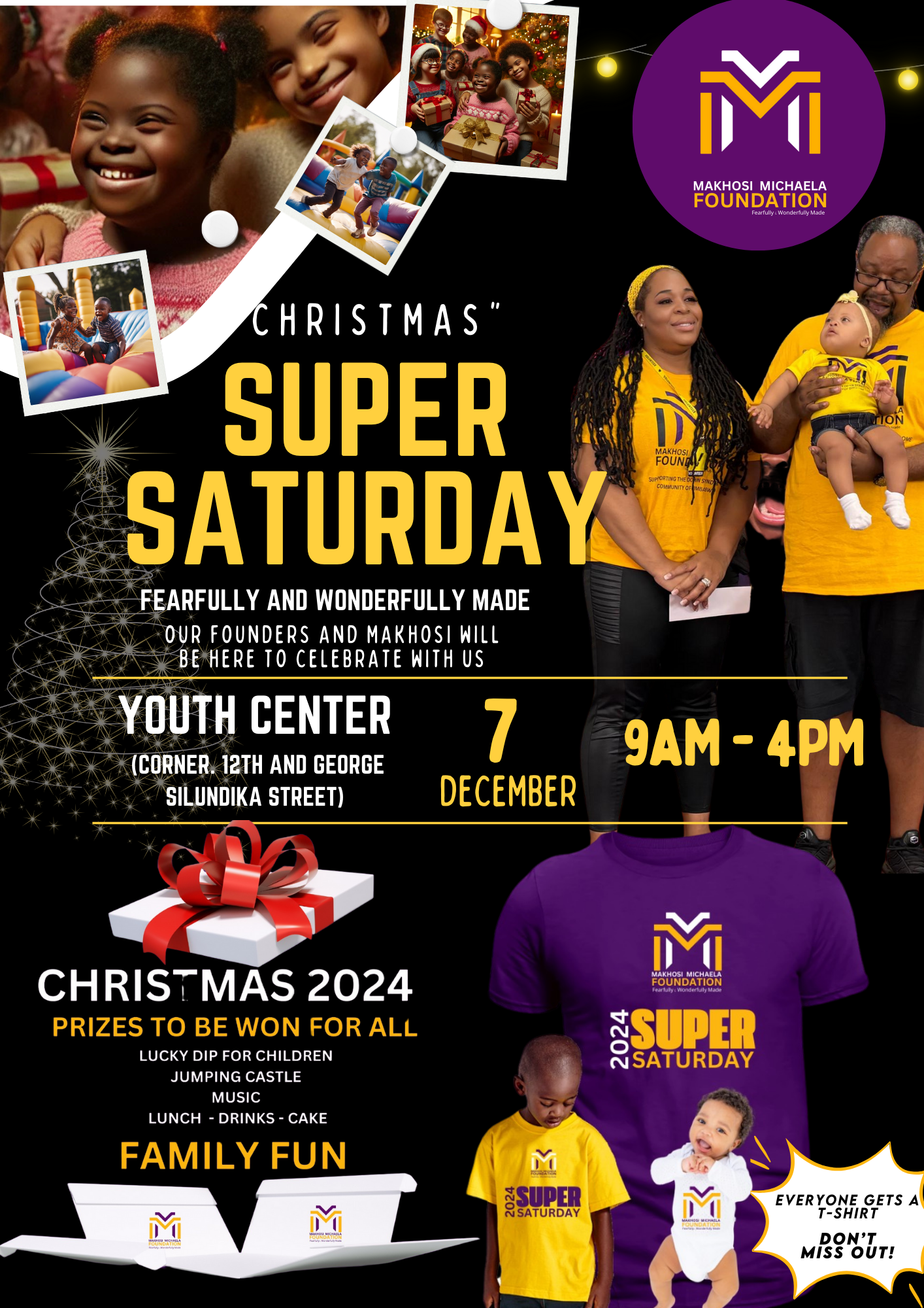 BulawayoJoin us for Super Christmas Saturday as we celebrate our children, who are fearfully and wonderfully made. Enjoy a lucky dip with Christmas gifts, a jumping castle, music, a Christmas lunch, and more! Plus, everyone will receive a MMF Christmas t-shirt.